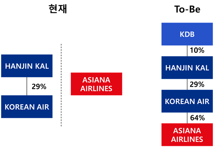 구조 관점에서 보자면, 산업은행이 한진칼의 주요주주가 되며, 최근 경영권 분쟁 등으로 이슈가 있는 한진일가 분쟁에 산업은행이 어느 정도의 영향권을 행사할 수 있게 되었다는 점이 하나의 포인트가 될 수 있겠네요.