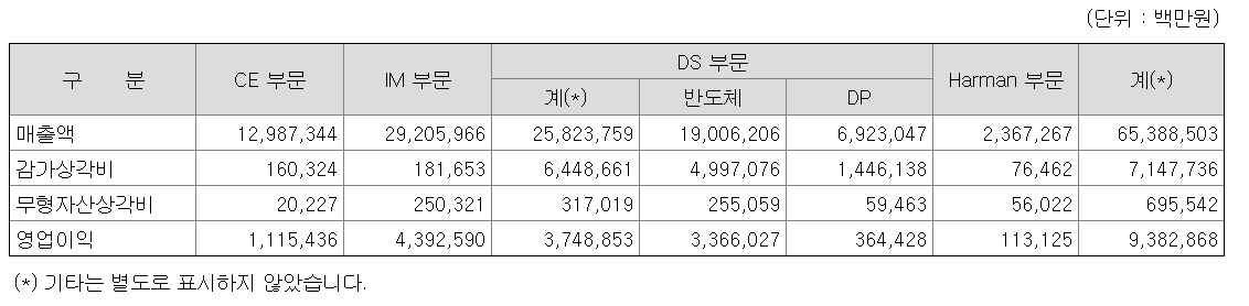 (4) 삼성전자는 2016년에 전장사업 및 오디오부문을 강화하기 위해 Harman을 인수하였고, 이를 독립적인 부문으로 운영하고 있습니다.